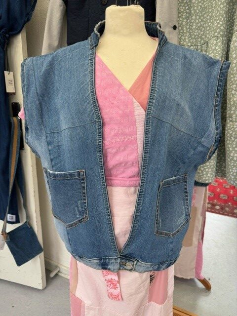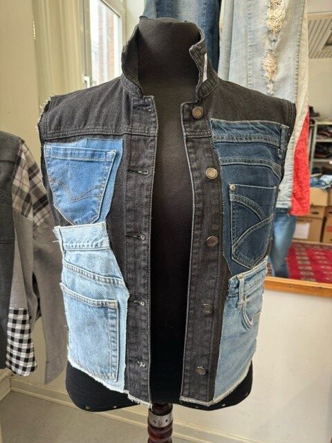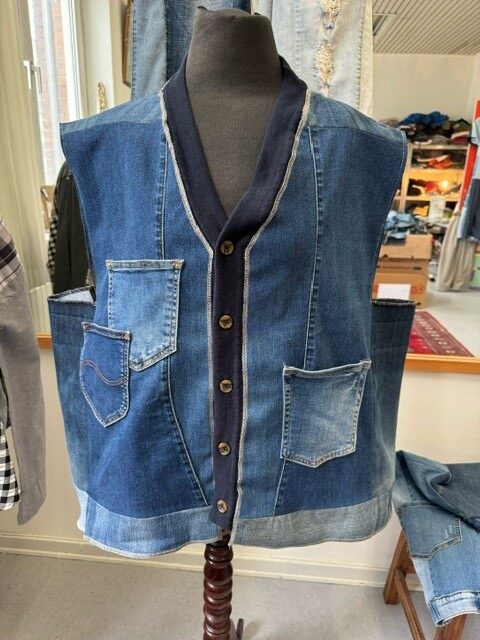 Vest syet af kasserede denim/cowboybukser.