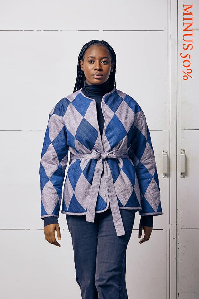 Lavet af kasserede servietter og denim med mere fra plejesektoren. 100 % genbrug af tekstiler, fra Textilias UPCY!-serie.